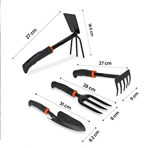 Kraft Seeds Garden Cultivating Premium Black beneficial Tools set with Comfort Rubber Grip – Pack of 4