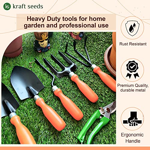 Kraft seeds Best Gardening tool set save your time significantly since they are effective and can provide enhanced productivity while doing garden activities! Easy to use, these tools are portable with long life to provide top-notch garden experience!