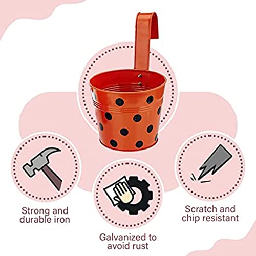 Use Metal Iron Hanging Flower pots to Decorate your home and garden and hold colorful flowers, tasty herbs, peppers, succulent strawberries, plump tomatoes.Bright Colors,Special Hanging Design And Cute Sizes. They Can Be Hung On Anywhere And Can Be DIY As You Wanted.Mountable Exterior Hanging Balcony Garden Decorations,These Planters Will Add Style And Colour To Your Garden And House!They are the ideal shape and size to create an eye-catching vibrant display of colour and also look good hanging from railings or garden fences.Ideal for brightening up dull brick walls and sheds with your favourite flowers, herbs or plants.