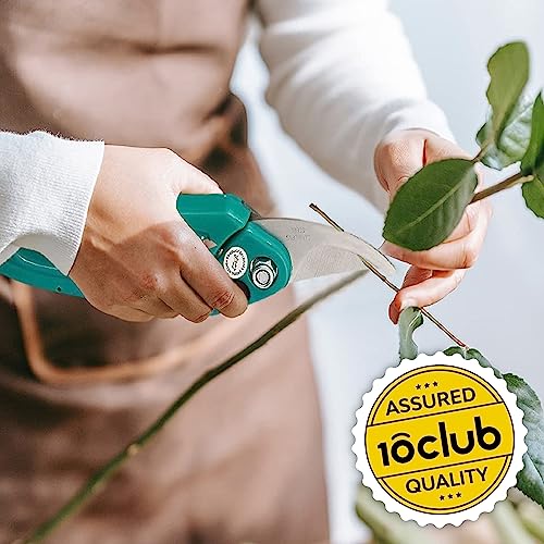 The blades of this gardening shears are made of high carbon stainless steel metal. The blades are polished with ultra-fine polishing technology. They retain their sharpness for a longer period of time.