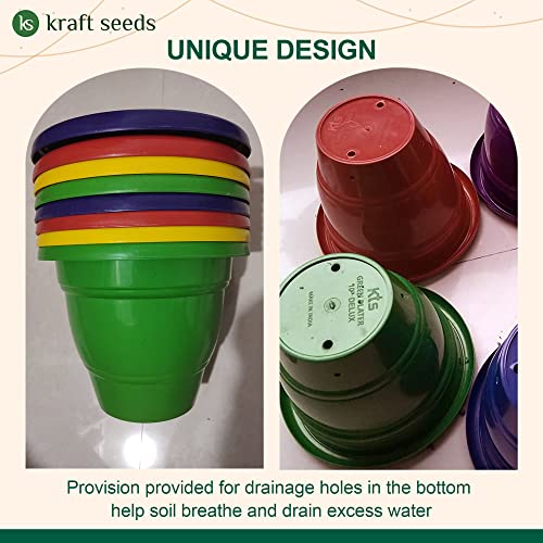 Kraft Seeds Plastic Deluxe Flower Pots (5 Pcs, 10 Inch, Multicolor) | Planters for Home Garden | Plant Pots for Lawns and Gardens | Planting Pots for Balcony and Terrace | Heavy Duty Gamla Pots