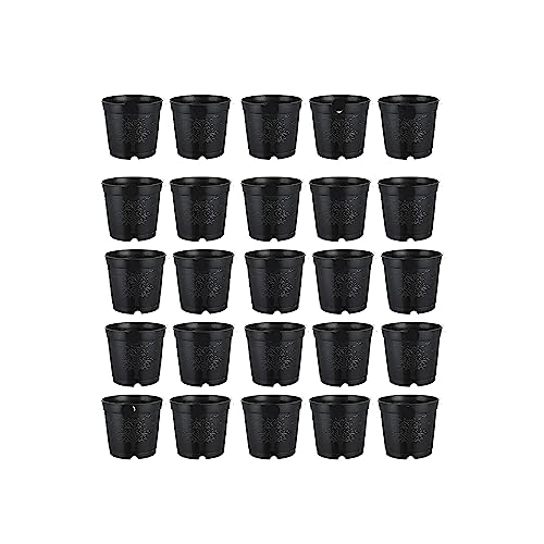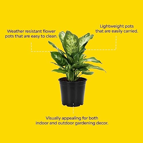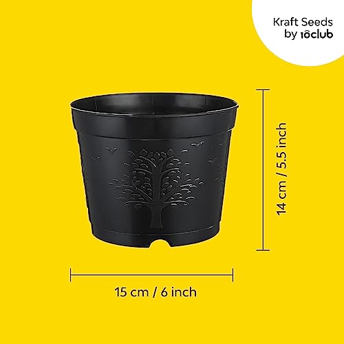 Kraft Seeds Round Flower Pot with Bottom Tray Set Home Garden Office Plant Balcony Flowering Planter (6-Inch, Black, Pack of 25)