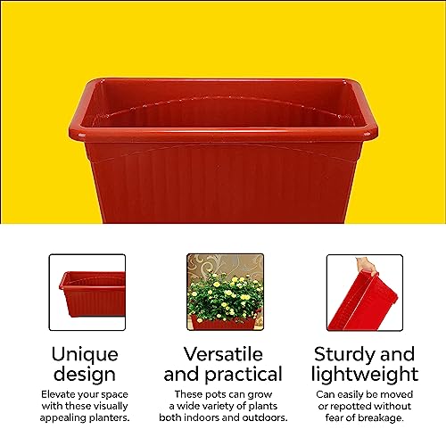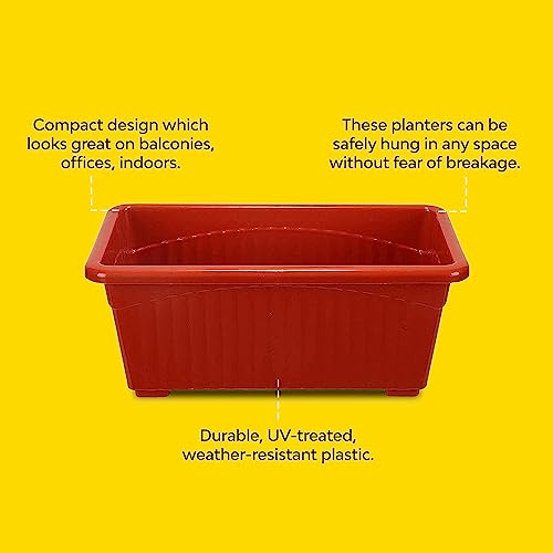 Kraft Seeds Plastic Window Planters (4 Pcs, 13 Inch, Red) | Planting Pots for House Plants | Flower Planters for Home Gardening | Floor Pots for Lawns and Gardens | Flower Plant Pots for Home Balcony