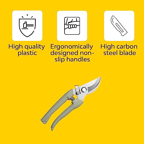 Made with hard and sharp blade it is strong enough to cut through tough boughs, roots and shrubs with high precision and control. It is handy and can be used as garden scissors too!