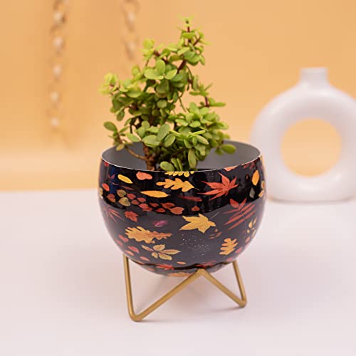 EXCEPTIONAL DESIGN: This planter has a black base with leaves printed on it which gives it an autumn vibe. The planter can be used to decorate your home & office. It comes with a drainage hole to drain out excess water.