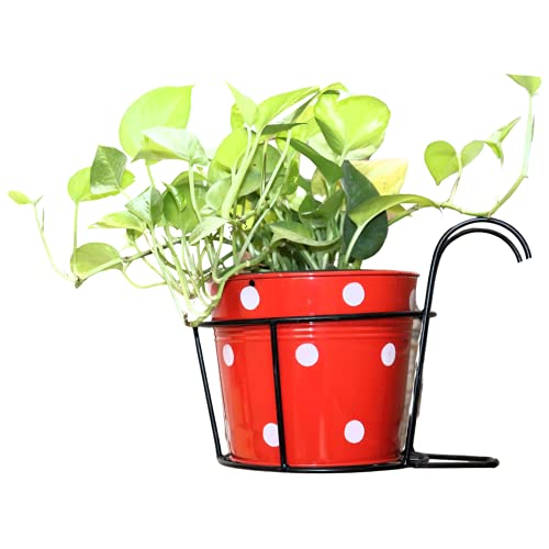 Leafy Tales Hanging Flower Pot Holder Railing Potted Plant Stand for Home Balcony Décor, Black, 1 Piece, Metal Basket-1 (Metal Basket-1)