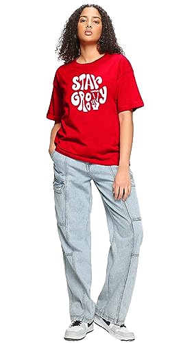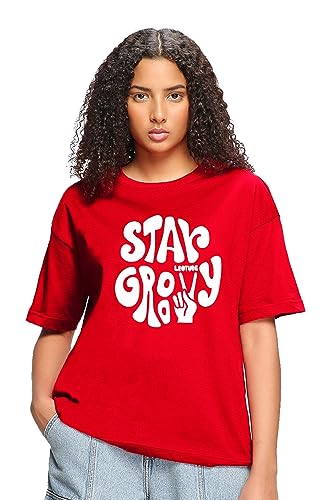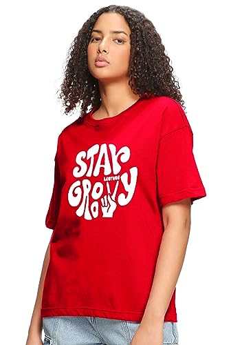 LEOTUDE Cotton Blend Half Sleeve Oversized Back Printed Women’s T-Shirt