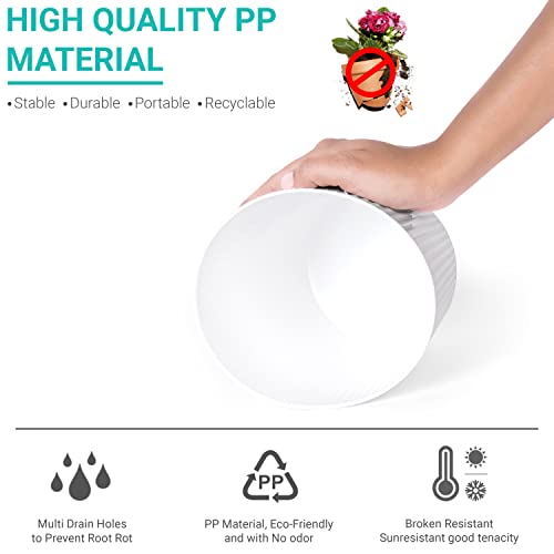 EXCELLENT DRAINAGE DESIGN: These plastic plant pots with drainage holes in the bottom which are absolutely excellent drainage can avoid root rot. Meanwhile, it keeps humidity and air circulation which provides a healthy environment for your plants. They are ideal flowering pots for aloe vera, snake plants, spider plants, peace lily, ZZ plants, orchids, herbs, and succulents, etc.