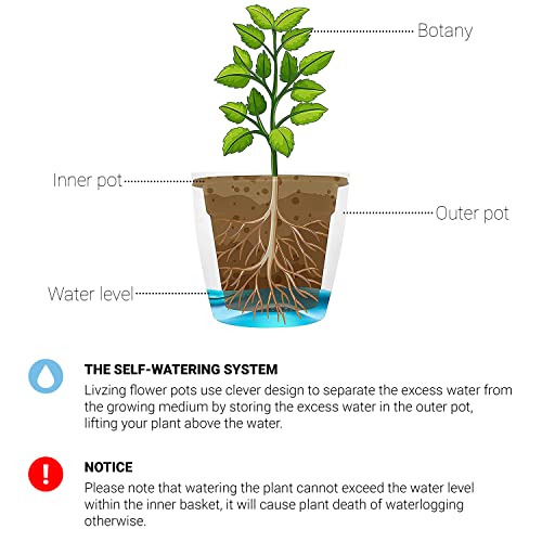 UNIQUE SELF WATERING STRUCTURE: Livzing wall pots for plants use clever design to separate the excess water from the growing medium by storing the excess water in the outer pot, lifting your plant above the water. The inner pot has openings at the bottom allows the soil to contact the water in the outer pot and deliver water directly to plant roots. Thereby allowing the plant to drink at its own pace.