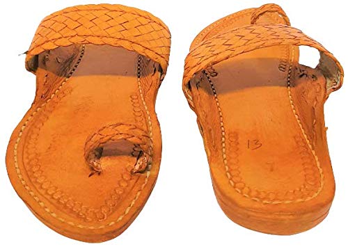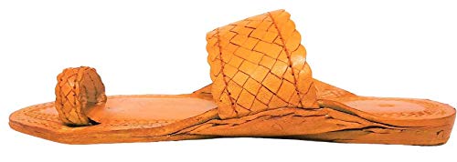 Pure leather A hand-crafted product. A collection of genuine export quality leather kolhapuri?s, durable and comfortable. Neatly hand made Kolhapuri chappals adorned with leather patti and thread embellishments for a classic yet contemporary look. These kind of products may bear some minor variations/ natural blemishes, which are not product flaws.