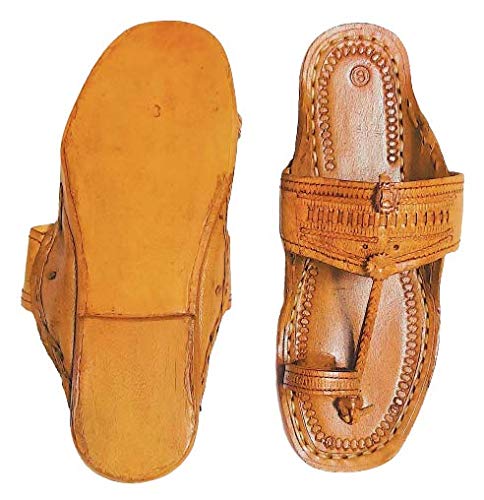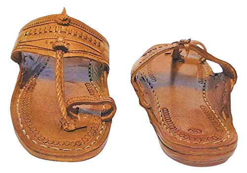 Pure leather A hand-crafted product. A collection of genuine export quality leather kolhapuri?s, durable and comfortable. Neatly hand made Kolhapuri chappals adorned with leather patti and thread embellishments for a classic yet contemporary look. These kind of products may bear some minor variations/ natural blemishes, which are not product flaws.