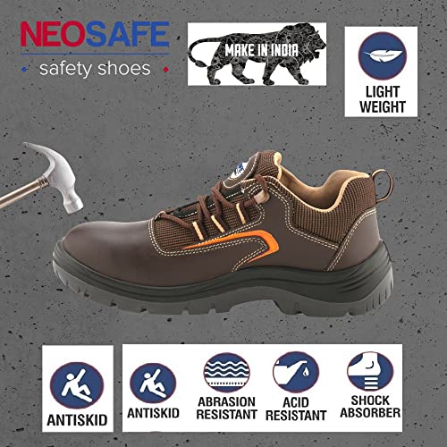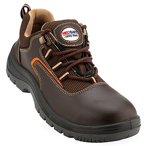 Neosafe Premium Quality “Brown Buff Grain Oli Pul-up” Leather safety shoe, Direct Injected Double Density PU Sole. 200 Joule Non-Metallic Light Weight Toe Cap, ISI Marked with IS:15298 Part 2, S1 Safety Standard.