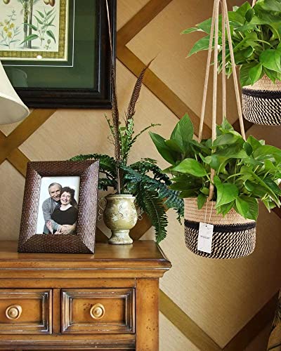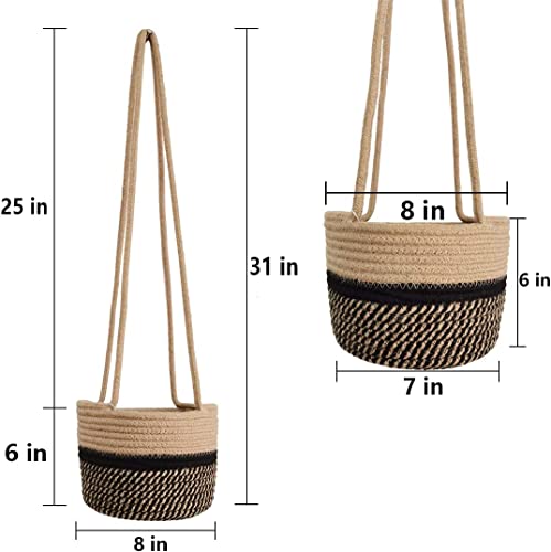 Product Description Product Name:ALBY POT HANGERS BASEKT ☆LBY jute rope hanging planter basket Material:jute, cotton rope Durable and soft, foldable and space saver. Color:White/Jute,Jute/Black/Stripes,Jute/Stitches Size:basket-(W)8″x(H)6″, rope length-25″, total length-31″ If you feel that the hanging rope is too long, you can tie a knot according to your needs. If you feel that is not long enough, you can hang a hook or chain at the high place first. Apply:display potted plants, flower pot plant holder, hanging on ceiling or wall. Package included:2pc x hanging baskets