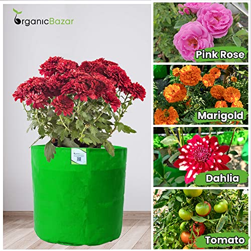 ORGANIC BAZAR 9×9 Grow Bags, Pack of 20, UV Protected HDPE 260 GSM, Round Green Plant Bags for Home and Terrace Vegetable Garden