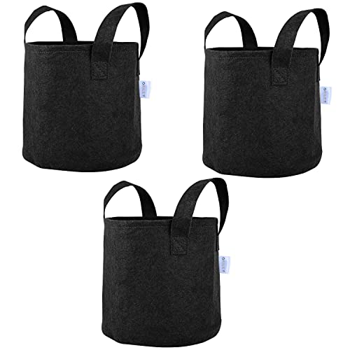 ORILEY Non Woven Fabric Grow Bags with Handle UV Treated Gardening Pots Terrace Indoor Outdoor Home Balcony Nursery Leafy Vegetable Fruits & Flower (Black, Round, 300 GSM 24 x 24 inch Pack of 3)