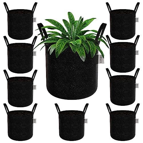 ORILEY Non Woven Fabric Grow Bags with Handle UV Treated Gardening Pots Terrace Indoor Outdoor Home Balcony Nursery Leafy Vegetable Fruits & Flower (Black, Round, 400 GSM 12 x 12 inch Pack of 10)