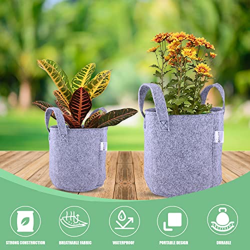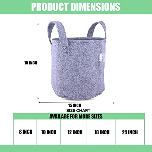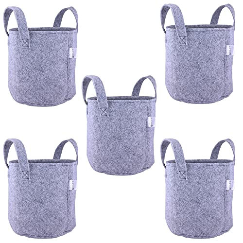 ORILEY Non Woven Fabric Grow Bags with Handle UV Treated Gardening Pots Terrace Indoor Outdoor Home Balcony Nursery Leafy Vegetable Fruits & Flower (Grey, Round, 500 GSM 15 x 15 inch Pack of 5)