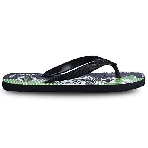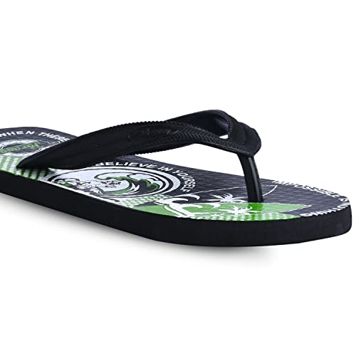Experience the best of comfort, style and durability with these trendy and comfortable green casual flip flops for men from Paragon. The pair features a printed sole and rubber V-Straps for a delightful walking experience.