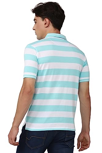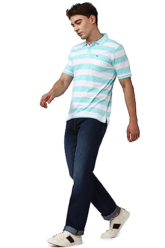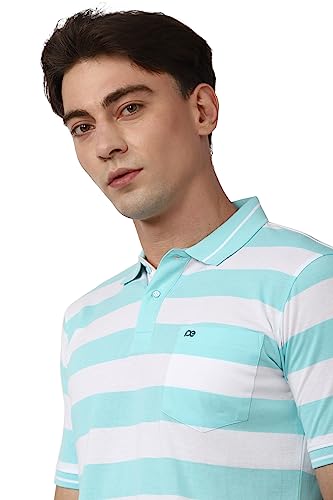 This Blue Polo Neck Half Sleeves T-shirt from Peter England Casuals is made from 60% Cotton and 40% Polyester. Fashioned in Regular Fit it features a Stripe design.