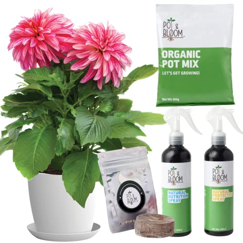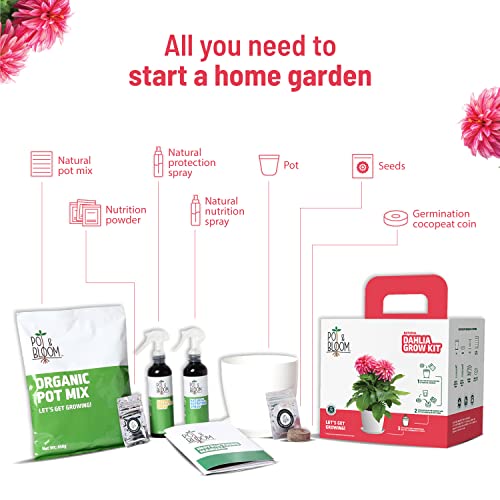 Pot and Bloom Gardening Kit – Dahila Kit. Perfect for Home Garden, Includes – Seeds, Garden Pot, Potting Mix, Nutrition & Protection Spray. Gardening Tools Kit For Home Garden, Home Garden Set, Return Gift for Birthdays