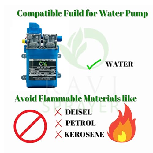It has many advance features like high self-priming capacity, auto cut-off system, very low vibration, very low noise, can run dry without any damage and compatible to work with most of all weed control chemicals. Advance technology and optimum material make these pumps suitable for varied different purposes. That makes it multifunctional, multipurpose and capable to be used in many different application areas especially Ag- riculture Sprayer, Tractor Pumping and Spraying.lrrigation Purpose, Garden Sprinklers, Garden Watering and Spraying Purpose, Car Wash- er.High Pressure Washing Machine, High Pressure Water Output, General Industrial Purpose Beverage Processing, Brewing Machine, Water Dis-penser System, Water Purification System.Solar Water System, Home Use, Showering, Water Taps ln The Boat, Marine and many more. Small size but strong enough. Low power consumption & high efficiency User Guidance – To run this DC Pump effectively use minimum 12V fully charged Battery (Lithium ion or Lead – Acid Battery Only ) and if want to use DC Adapter than only use 12V3 amp capacity Adapter Only.