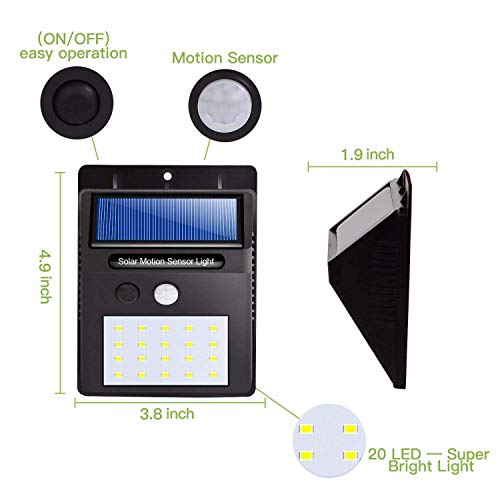 [Ultra-Bright Solar Lights]: Upgraded powerful LED Solar Motion Sensor Lights, providing a super bright lumen for a wide area. More sunshine it charged and it can illuminate longer. Note: If there is no good sunlight for several days, thus the light may not light up at night. Please light up after 8-10 hours of charging.