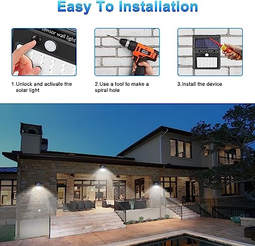 [Easy to install]:The solar lights no complicated cables, you can use the provided screw or 3M double-sided tape to mount the device. Note: Please kindly note the recommended installation height would be 1.8-2.5M.