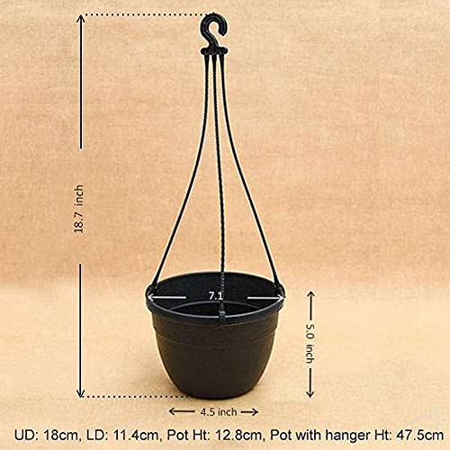 Root Bridges 7.1″ Black Corsica Hanging Basket (Pack of 5) Flower Pot Gamla for Indoor Plants, Gardening, Balcony Garden Flowers, Home Decoration Pots
