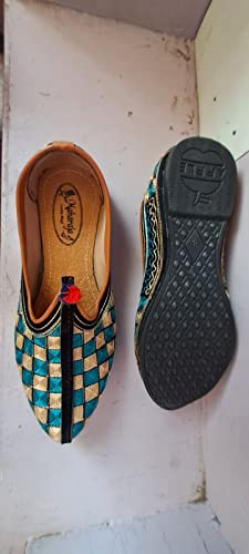 Care Instructions: Clean your shoes with leather cleaner or leather shampoo, and use a good quality brush to remove loose surface dirt; if your shoes are wet after cleaning, let them air-dry before your proceed with the next step; dry shoes in room temperature only and never expose them to the sun, heat from the sun will cause the leather to shrink, wrinkle, harden, dry, and crack ♥ Trendy and comfortable, This pair of the flat which is made up of high-quality material having beautiful design makes it different. ♥ Give a beautiful complement to your ethnic look in the form of these charming flats, having the best outer material along which make them comfortable to wear. ♥ We provide individual, featuring a trendy, comfy, and traditional design inspired flats from the house of our team. ♥ This Stylish pair of flats with your ethnic apparel to complete your look. ♥ We manage the quality, style, and durability of the products. ♥ This Flat with sequence and fine quality material and will get you noticed for all good reasons. ♥ Our aim is to display the colors of our products as accurately as possible. However, the resolution, print methods, and screen settings can affect how an item is displayed. Item color may show slight variations due to different shooting light and monitor display ♥ We also ensure the highest level of customer satisfaction through our rigorous quality control measures ♥