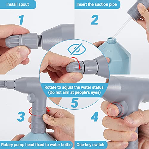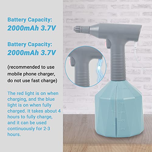 🌼💦【USB Rechargeable Battery & Battery Indicator】The 2000mAh battery implant this garden spray bottle can continually work for up to 3 hours once fully charged 4 hours. Head LED light in electric plant sprayer indicates battery life, you don’t need to worry if out of battery when using.
