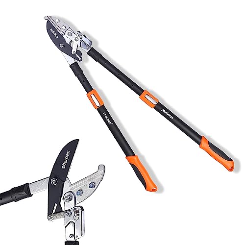 Sharpex Professional Ratchet Anvil Lopper with Compound Action, Sturdy Telescopic Handles with Extra Leverage, Garden Pruning Tree Hedge Branch Cutter Garden Lopper – Pruning Tool (Orange)