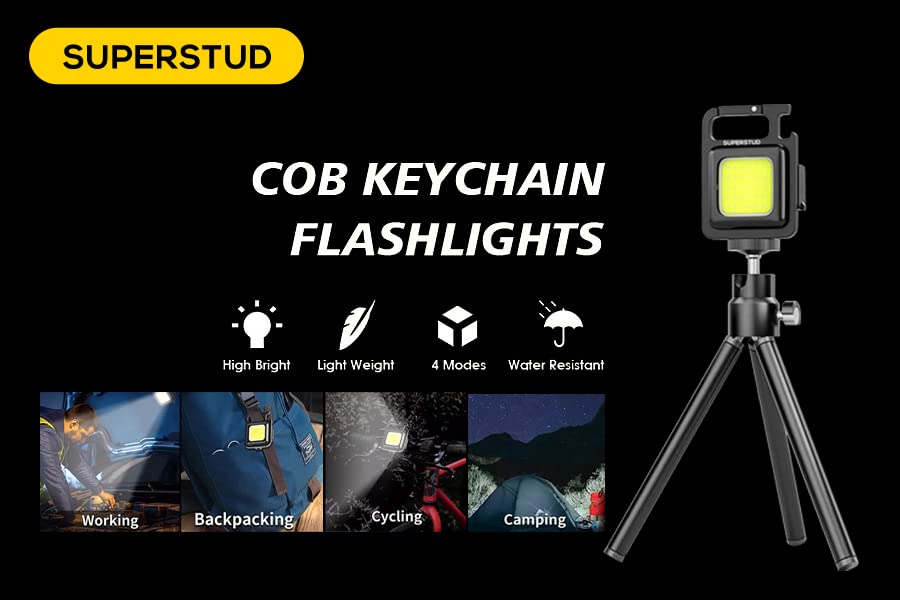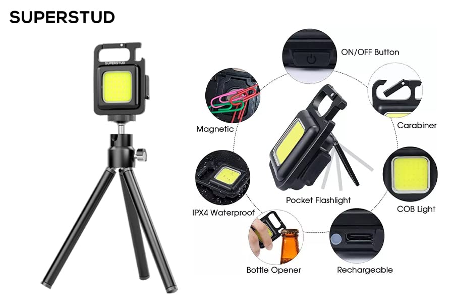 SUPERSTUD COB Small Rechargeable Flashlights Keychain with Bottle Opener || Shoting Light for Camera || Video Light for YouTube || Folding Bracket and Emergency Light (Medium)