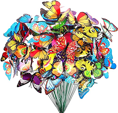 – Great quality: sturdy and durable, made of fairly thick PVC waterproof material, and tightly attached on the strong metal stake, not easy to be ruined by heavy rain or shiny sunlight -Suitable for different scenarios:They complies with different surroundings, like Mother’s Day Basket, party favors, gift for kids, different sizes of flower pot, home decorations, your lawn patio, won’t seems to be weird – More than 10 bright colors: pink, red, purple, yellow, green, they , etc. They look like to fly in the real world – It’s easy to conceal the thin metal stake, creating the illusion of real butterflies. The wings can be pushed open or shut for varied display. -The colorful insects of this 20pcs Butterfly Stakes are attached to their metal posts by springs, so they sway in the breeze like the real things; The wings can be pushed open or shut for varied display