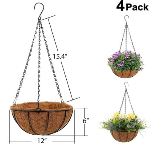 Tim Tim Agro Metal Hanging Planters Basket Set of 4 Hanging Flower Pots 10 Inch Chain Round Wire Plant Holder with Coco Coir Liner Garden Watering Hanging Baskets for Patio Garden Outdoor
