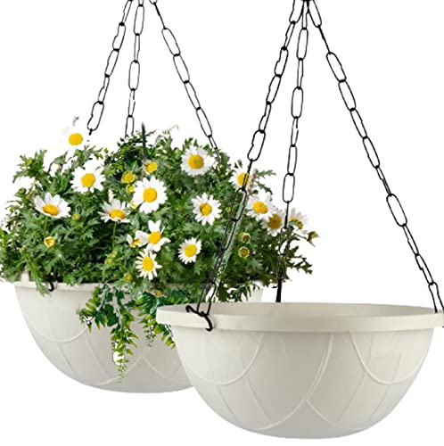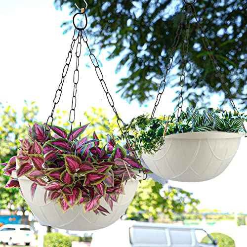 White Hanging Planter Basket – 10 Inch Indoor Outdoor Flower Pots, Plant Containers with Drainage Hole, Plant Pot for Hanging Plants, Pack 2