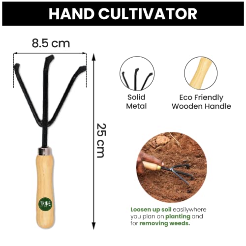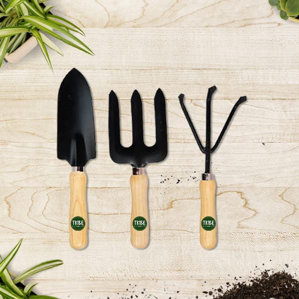 Tribe Made Gardening Tools kit for Home Garden Set (Transplanter. Small Trowel, Hand Fork, Big Hand Trowel, Hand Cultivator, Hand Weeder, Hand Weeder, Pruner) (Tool kit (3 in 1 Combo))