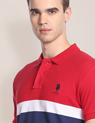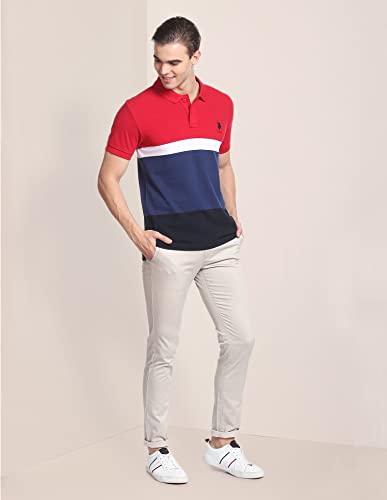 U.S. POLO ASSN. Men Multi Colour Horizontal Stripe Pique Polo Shirt