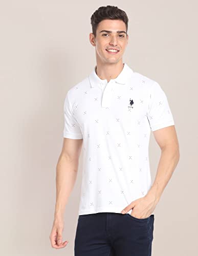 This printed polo shirt comes in a slim fit and a neutral hue and makes for a perfect transitional outfit.