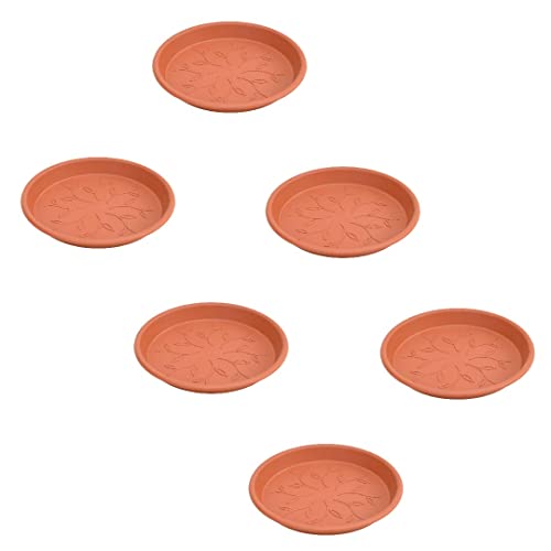 Ugaoo UV Treated Gardening Plastic Tray (Plate/Saucer) for Pots – 6 inch, Brown/Terracotta Color, Set of 6 | Tray for Plants Pot for Indoor Home Decor & Outdoor Garden & Balcony
