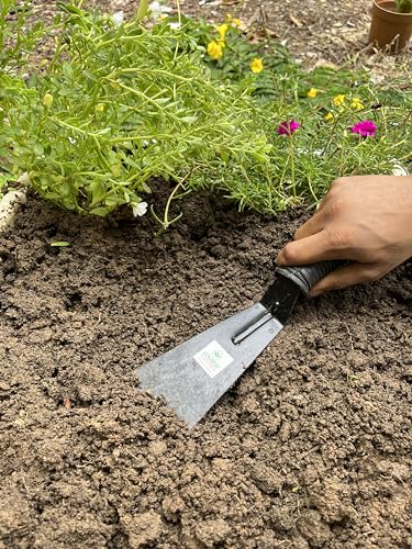 The Khurpi or Khurpa-Gardening Tools are designed with precision and craftsmanship, ensuring its durability and longevity. The tool is used in squatting position. The khurpi consists of a sharp, straight-edged metallic blade with a tang embedded into a wooden handle. Its robust handle provides a comfortable grip, allowing you to work for extended periods with comfort.