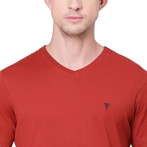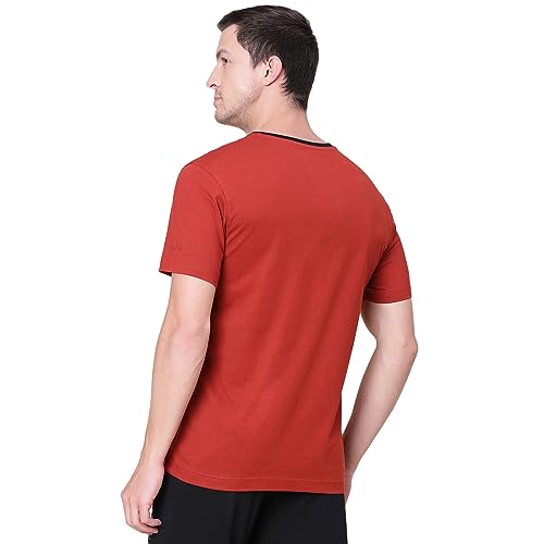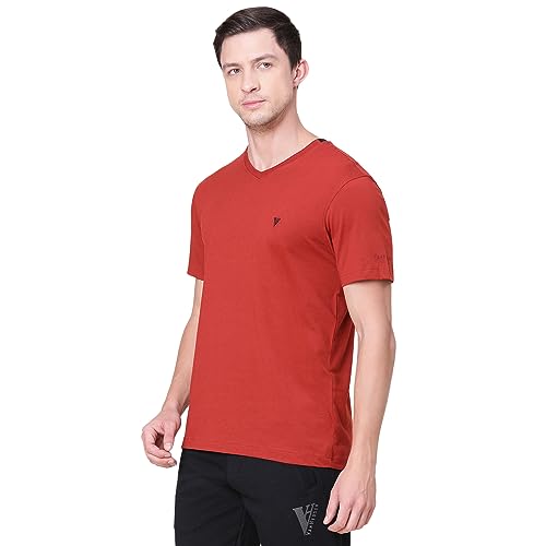 Van Heusen Athleisure Men T-Shirt – Cotton Rich – Smart Tech, Easy Stain Release, Anti Stat, Ultra Soft, Moisture Wicking_60001_Burnt Orange_L