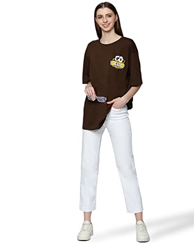 Introducing our bold and funky women’s oversized t-shirt, perfect for your everyday street wear. This black colour t-shirt features graphic print, adding a stylish touch to your ensemble. The half sleeves and crew neck provide a comfortable fit, allowing you to move freely throughout the day. Made from pure cotton, this t-shirt offers a soft and breathable feel against the skin. The eye-catching chest print adds an edgy vibe to your outfit, making a statement wherever you go. Whether you’re hitting the streets or hanging out with friends, this oversized t-shirt is the ideal choice for a cool and effortless look.
