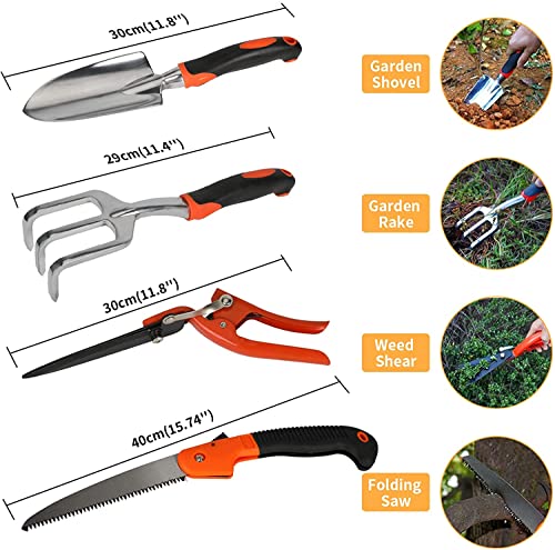 【 Durable and Safe To Use】The garden tools are made of special material- aluminum alloy, high carton steel, which are durable and strong to use.No need to worry about rust and breakage while using. The folding saw and pruning shear with a security lock enables safety to use.