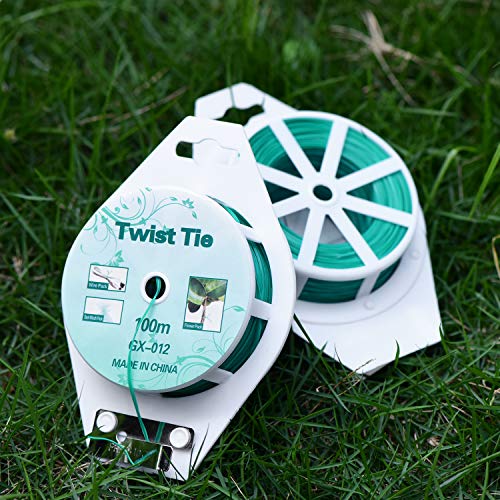 4. Durable green plastic-coating iron and 328ft length ensure this garden twist tie a long service time.